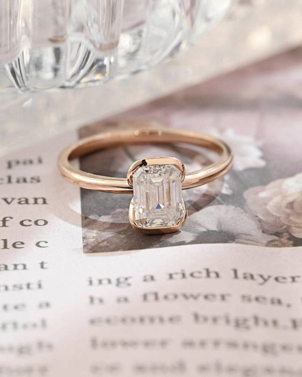 1.0-3.0 CT Emerald CVD Diamond Bezel Solitaire setting Engagement Ring