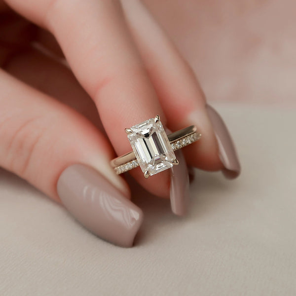 3.0CT Emerald Cut Moissanite Solitaire Bridal Ring Set
