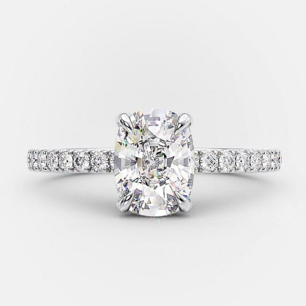 1.70ct Cushion Cut Moissanite Hidden Halo Engagement Ring