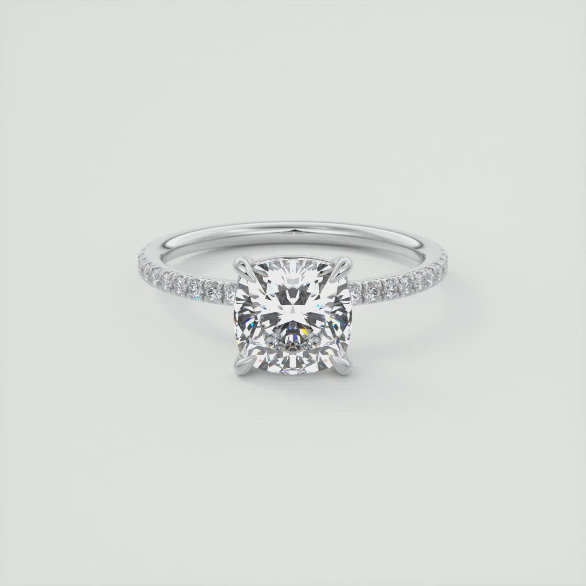 2CT Cushion Cut Moissanite Solitaire Pave Setting Engagement Ring