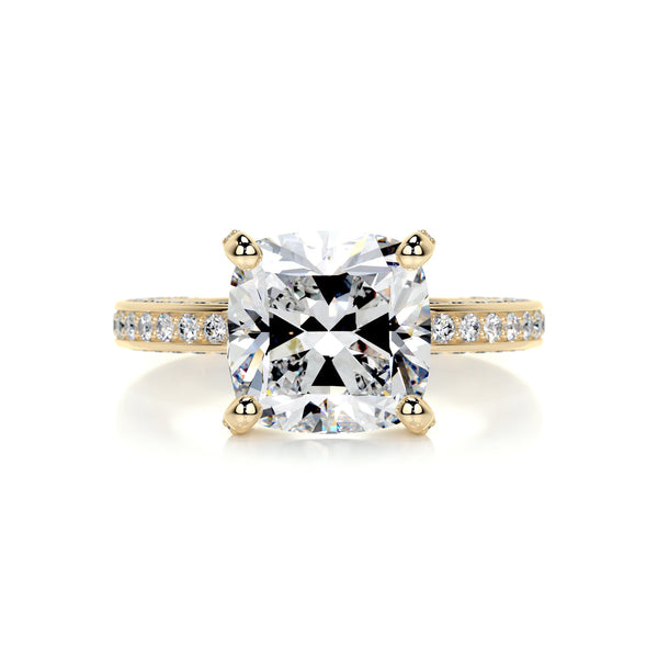 3.7 Carat Cushion Moissanite Triple Pavé Channel Set Engagement Ring