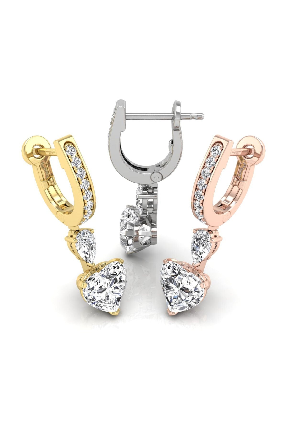 Heart, Pear & Round Cut Diamond Hoops Earrings for Women