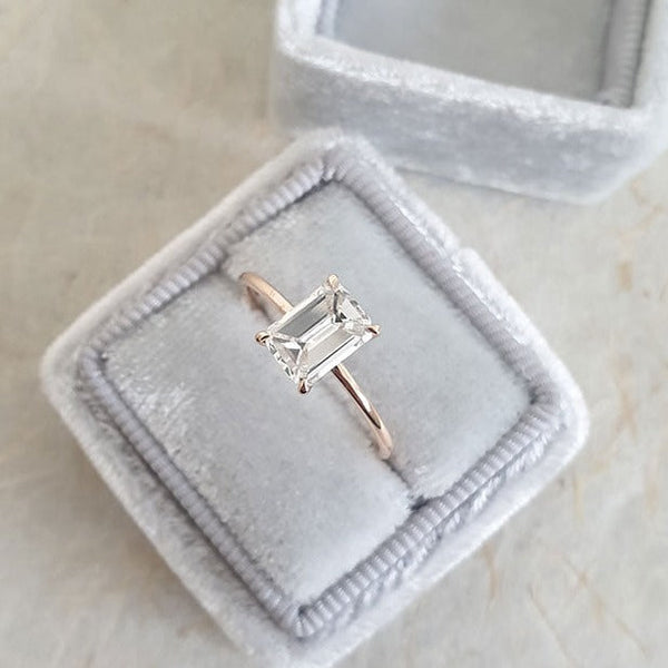 1.0ct Emerald Cut Moissanite Solitaire Style Engagement Ring