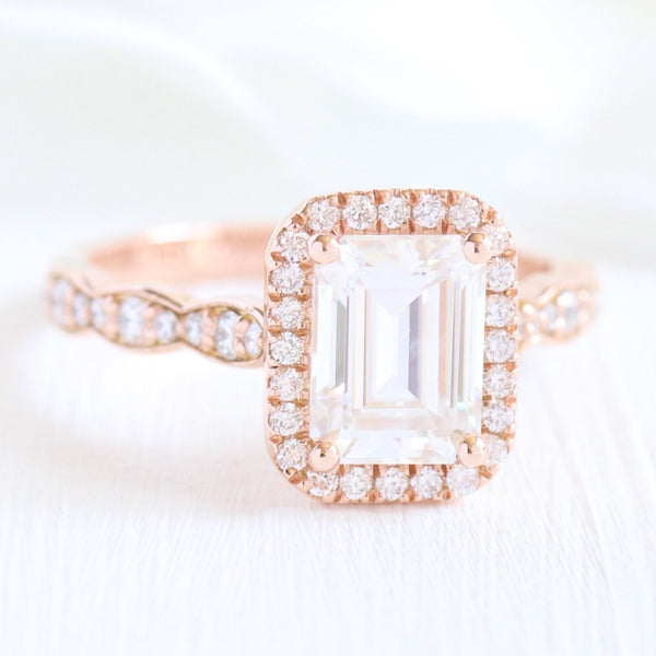1.60CT Emerald Cut Moissanite Halo Engagement Ring