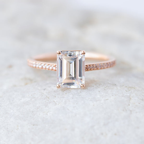 1.60CT Emerald Cut Solitaire Pave Setting Moissanite Engagement Ring