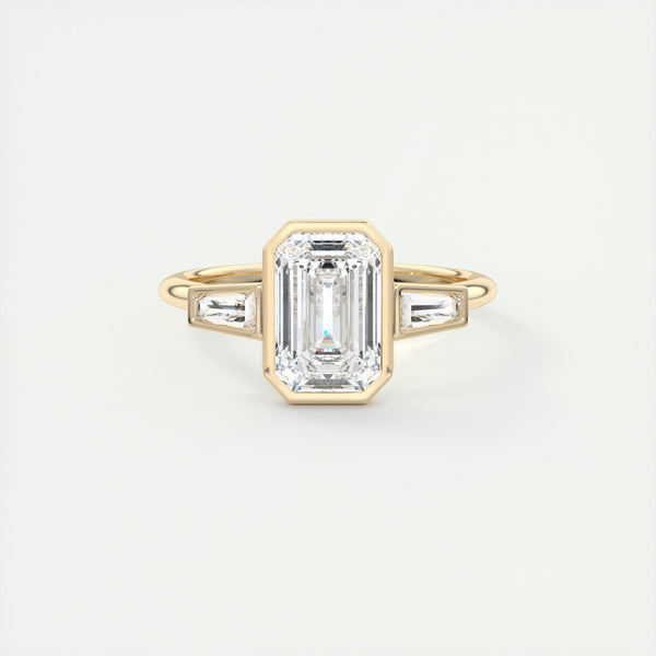 2.0CT Emerald Cut Moissanite Bezel 3 Stone Diamond Engagement Ring