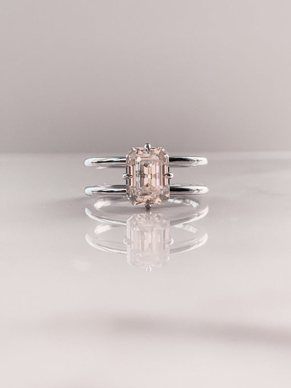 2.50 CT Emerald Moissanite Solitaire Double Band Engagement Ring
