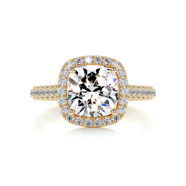3.40 Carat Square Cushion Halo Triple Pave Moissanite Engagement Ring