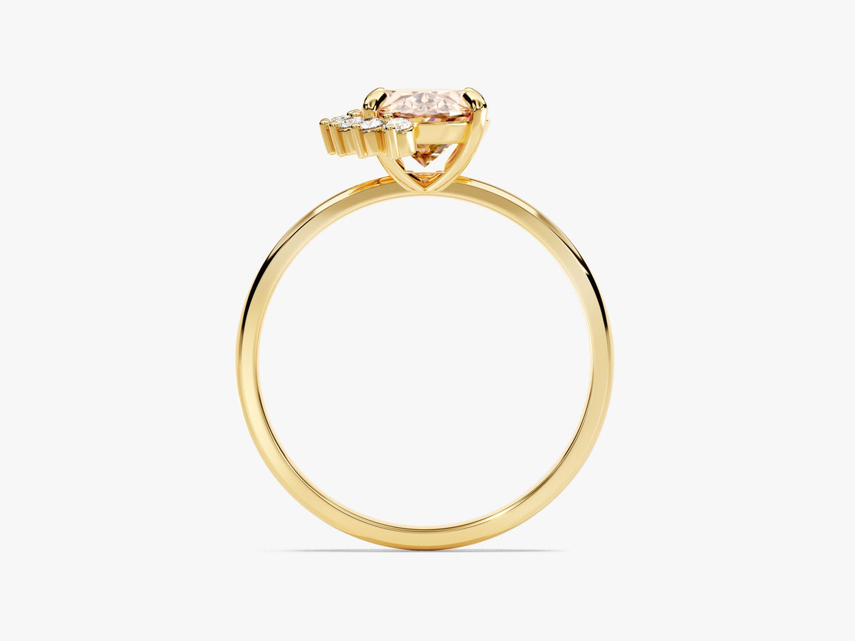 The circular moissanite accents offer more shine and brilliance, and the oval-cut morganite stone gives the ring a touch of elegance and refinement while the round moissanite accents add extra sparkle and brilliance. This ring is perfect for someone who appreciates classic and timeless design with a modern twist.