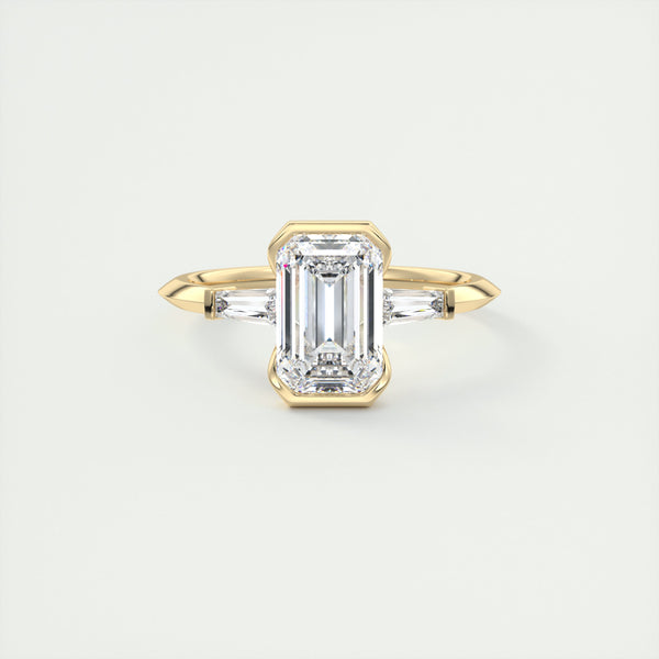2.0CT Emerald Moissanite Half Bezel 3 Stones Engagement Ring