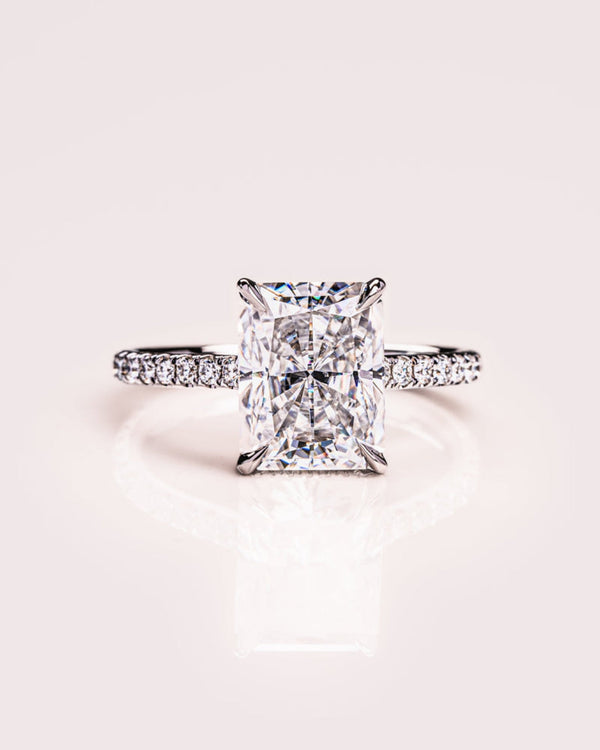 1.50 - 3.0 CT Radiant CVD Diamond Hidden Halo Pave Setting Engagement Ring