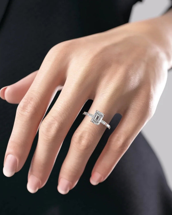 2.0 -4.0 CT Emerald Shape Hidden Halo & Single Pave Engagement Ring