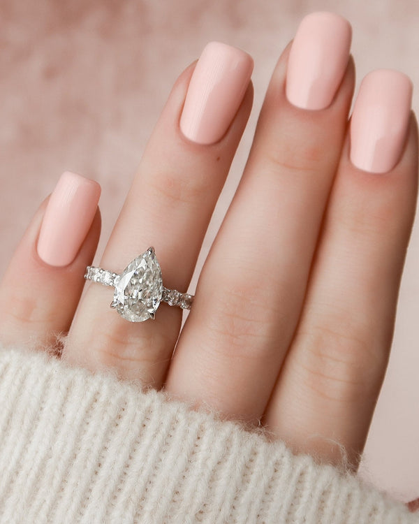 2.0 - 4.0 CT Pear Cut CVD Diamond Hidden Halo & Pave Engagement Ring