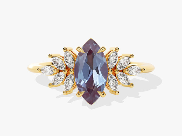 Marquise Lab Alexandrite Vintage Engagement Ring with Moissanite Sidestones