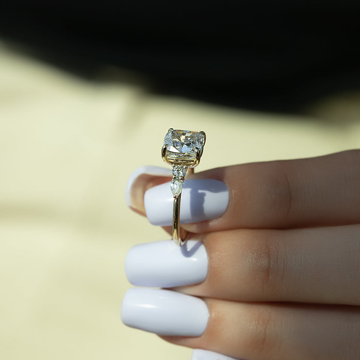 1.0 - 3.0 CT Cushion Cut CVD Diamond Five Stone Engagement Ring