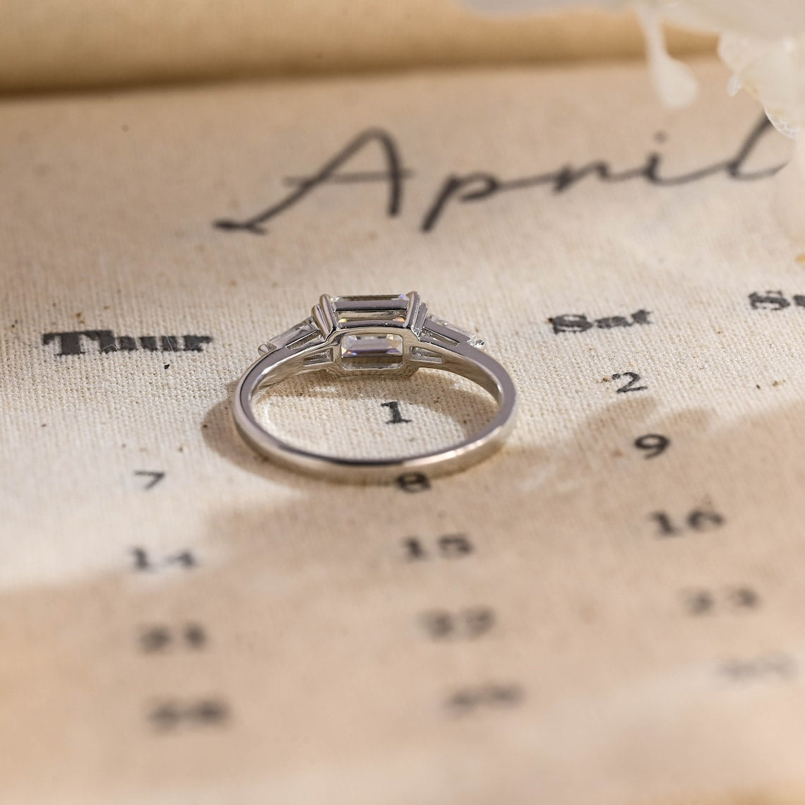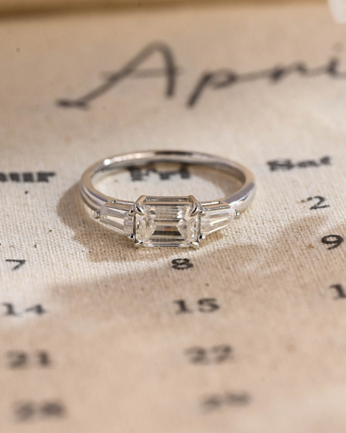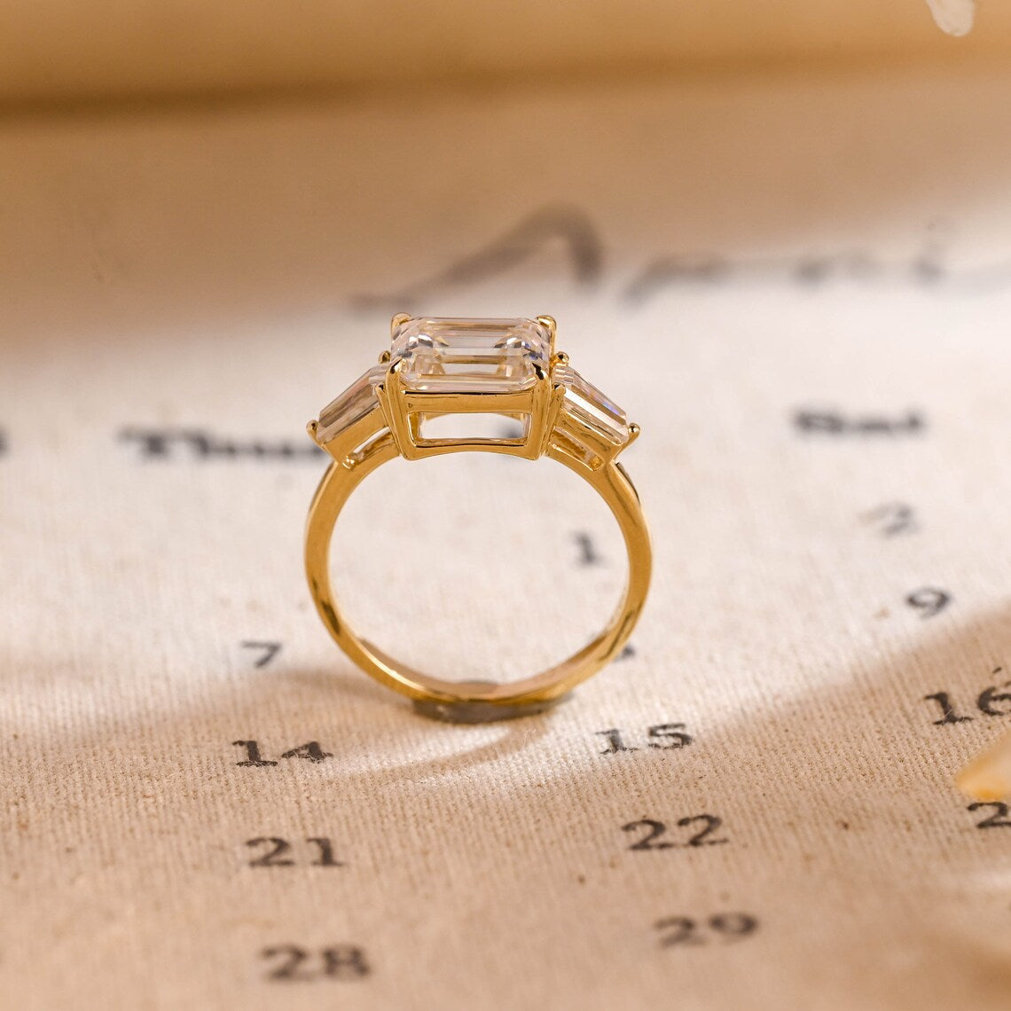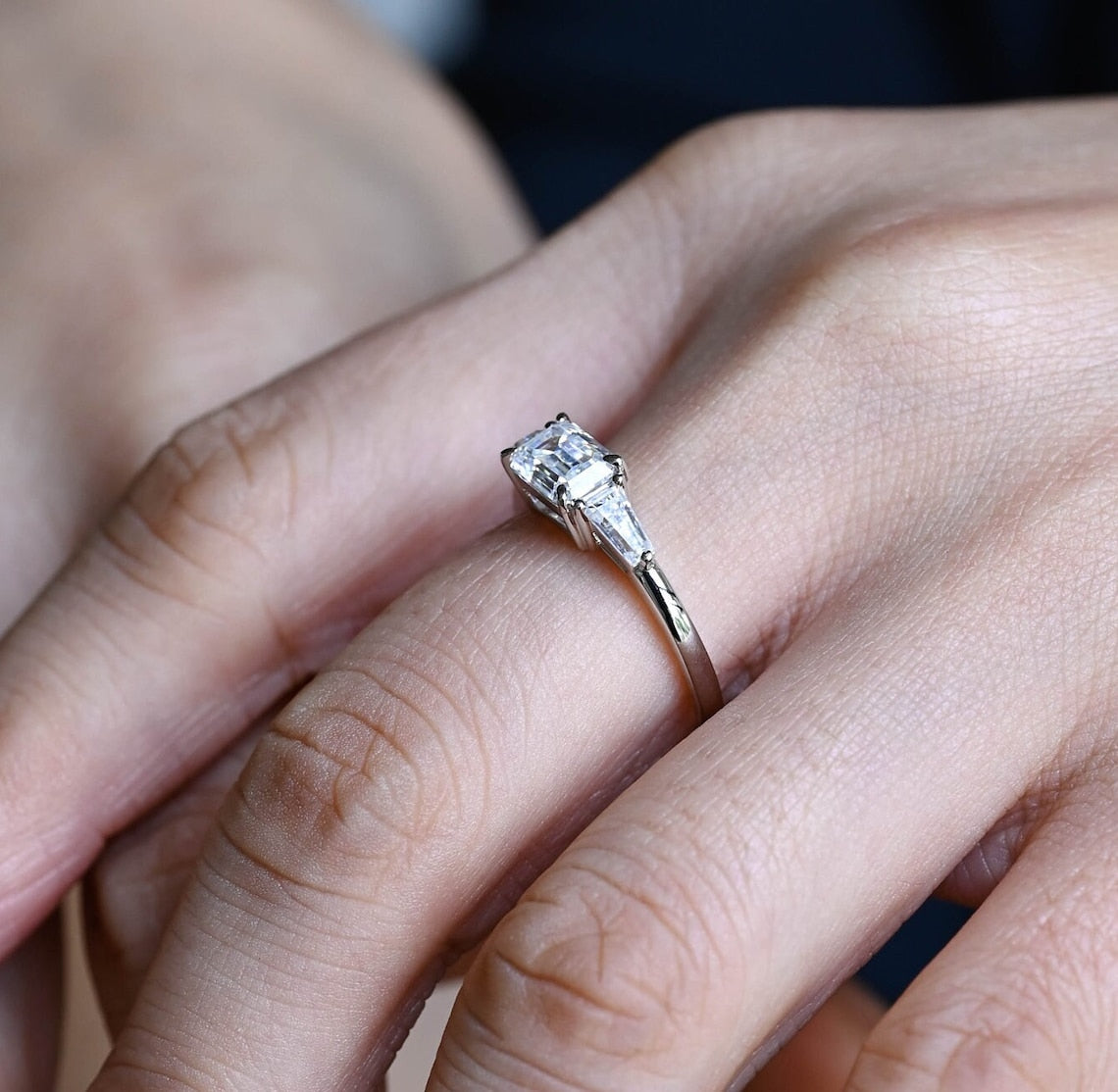 1.0-3.0 CT Emerald CVD Diamond Three Stone Style Engagement Ring