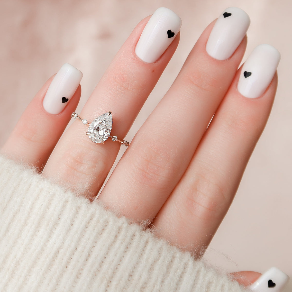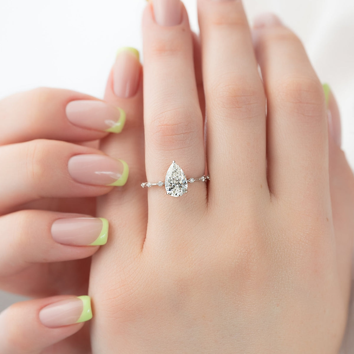 1.0 - 3.0 CT Pear Cut CVD Diamond Hidden Halo & Dainty Pave Engagement Ring