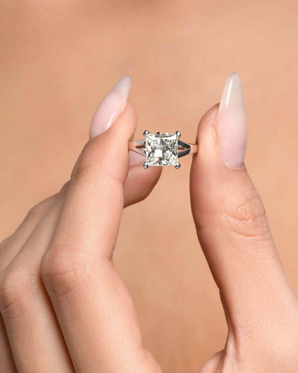 1.0-3.0 CT Princess CVD Diamond Solitaire Split Shank Engagement Ring