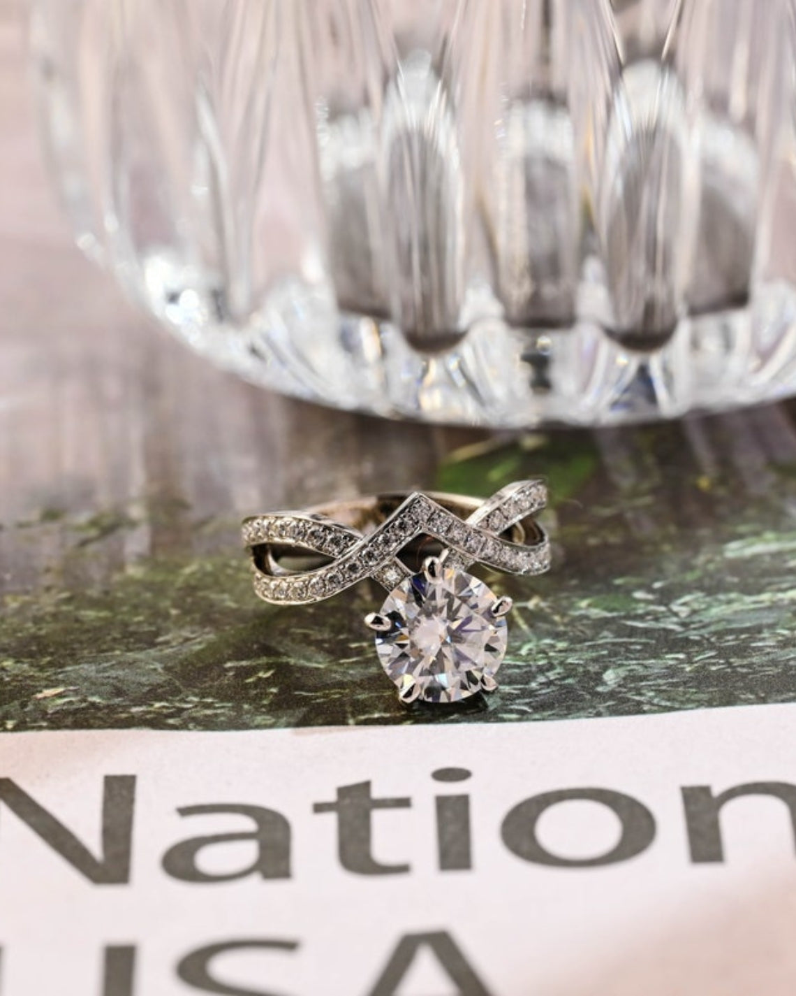 1.0-3.0 CT Round CVD Diamond Unique Setting Engagement Ring