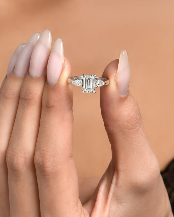 1.30-3.30 CT Emerald CVD Diamond Three Stone Engagement Ring