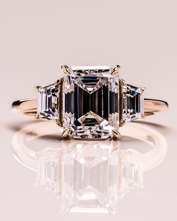 2.0 -3.42 CT Emerald CVD Diamond Three Stones Engagement Ring
