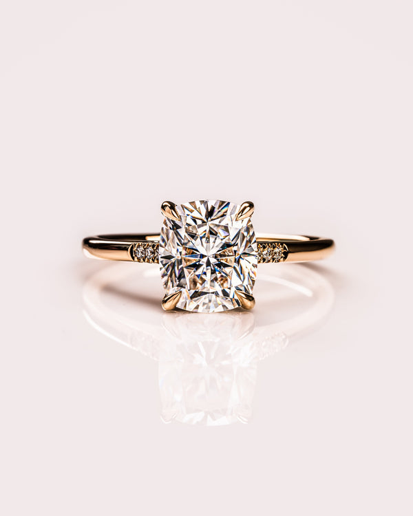 1.49-3.0 CT Cushion CVD Diamond Hidden Halo Engagement Ring