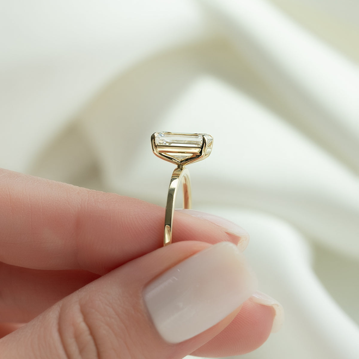 The Ring Shown in the Picture Holds a Beautiful Emerald Cut Lab Grown Diamond.Â