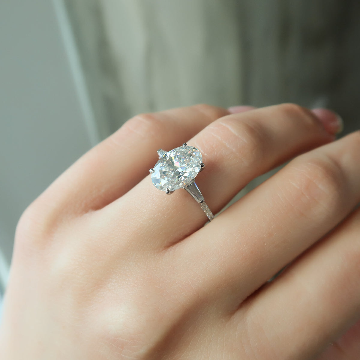 The Ring Shown in the Picture Holds a Beautiful Oval Cut Lab Grown Diamond.