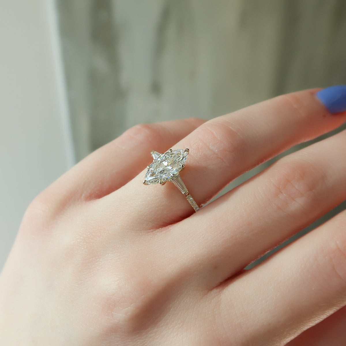 The Ring Shown in the Picture Holds a Beautiful Marquise Cut Lab Grown Diamond.Â