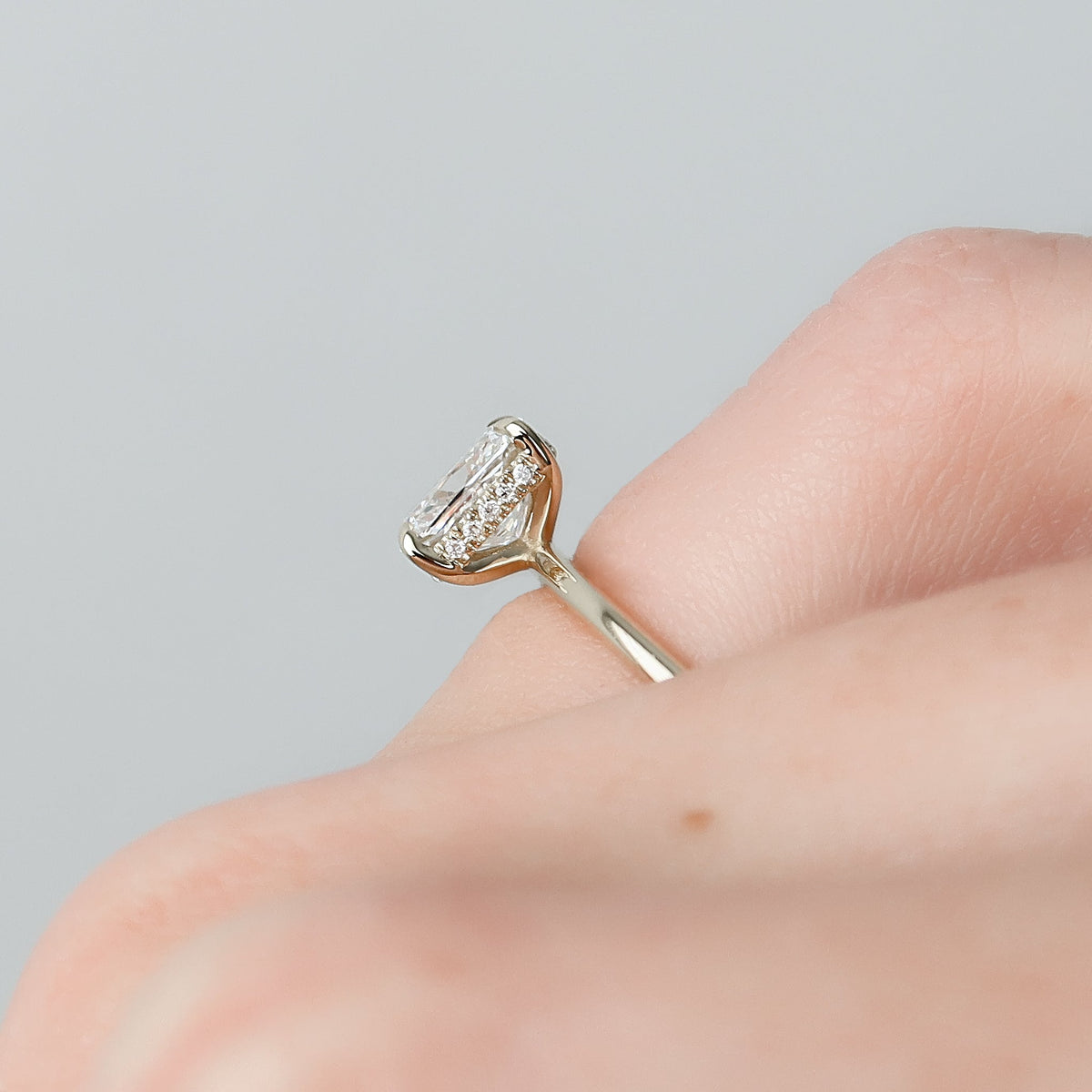 ✦ The Ring Shown in the Picture Holds a Beautiful Elongated Cushion Cut Lab Grown Diamond.