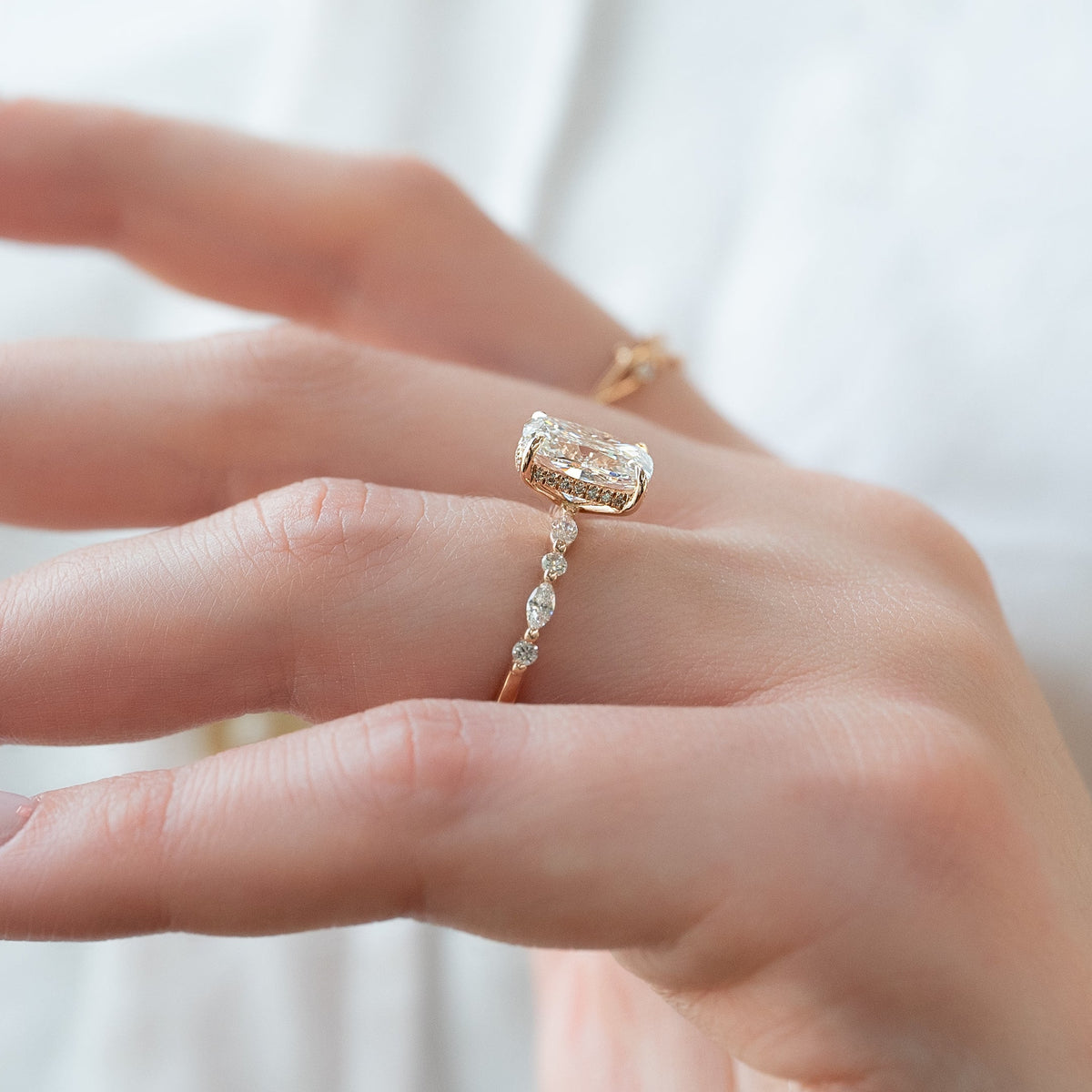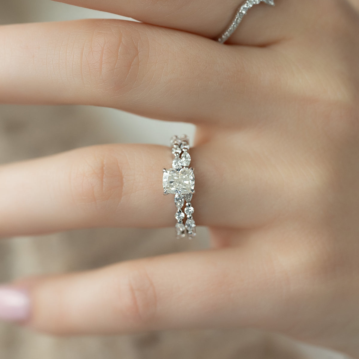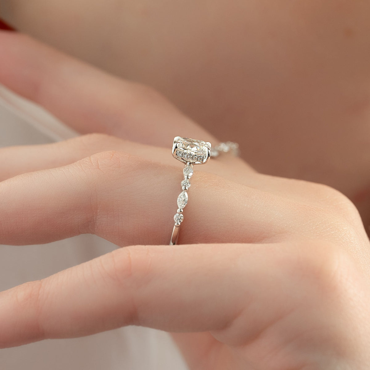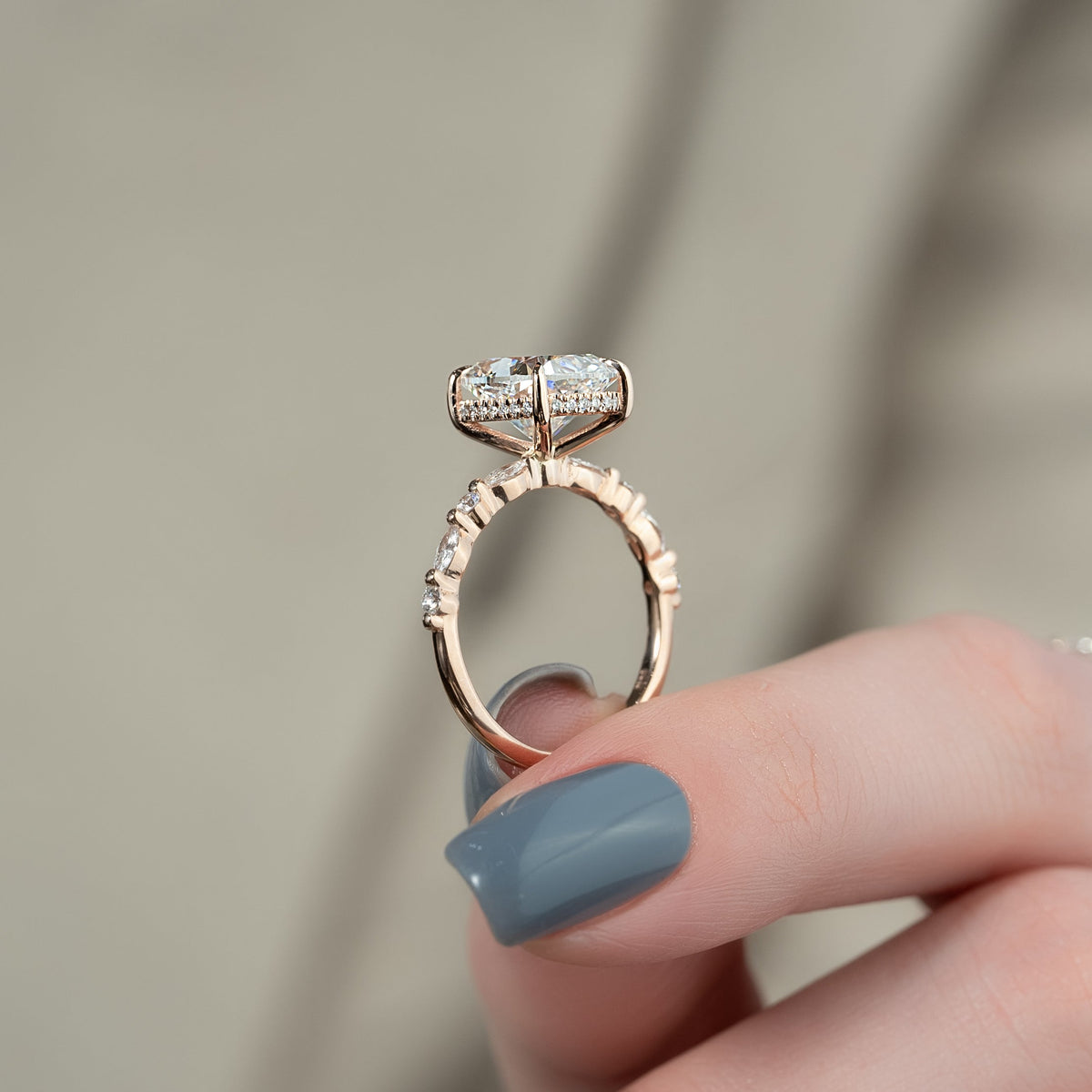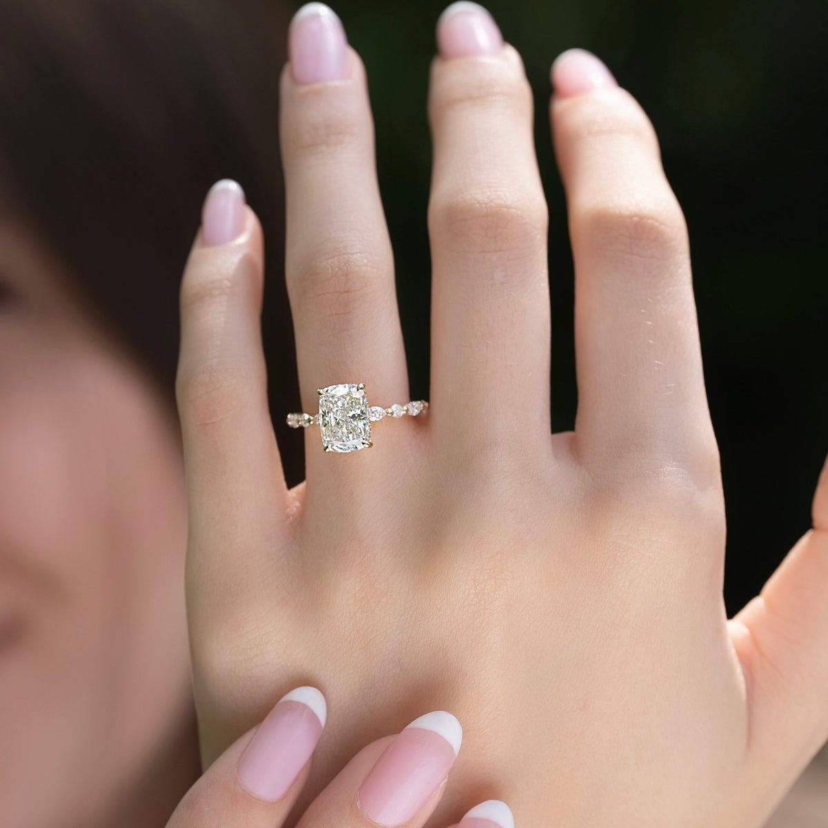 ✦ The Ring Shown in the Picture Holds a Beautiful Elongated Cushion Cut Lab Grown Diamond.