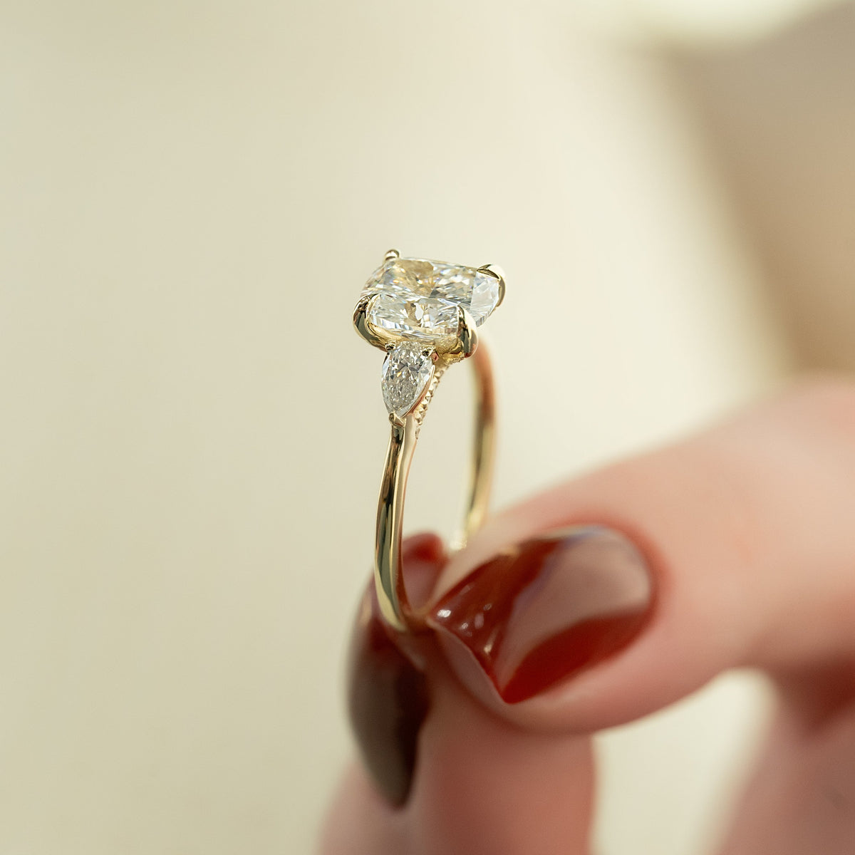✦ The Ring Shown in the Picture Holds a Beautiful Elongated Cushion Cut Lab Grown Diamond.