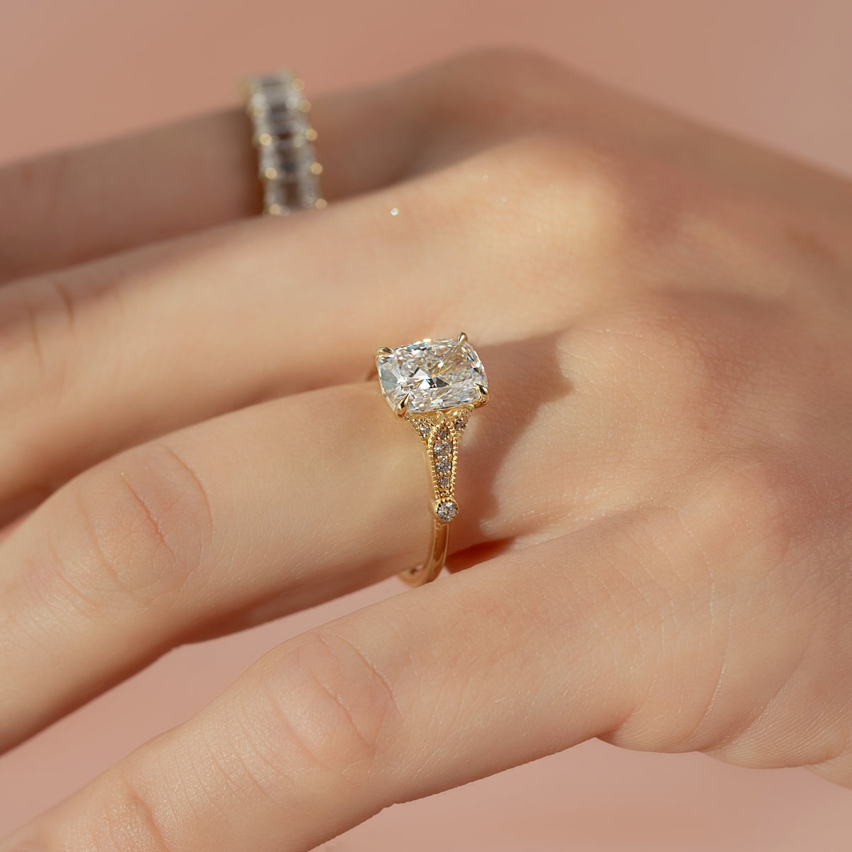 2.0 - 4.0 CT Elongated Cushion Cut CVD Diamond Vintage Style Engagement Ring