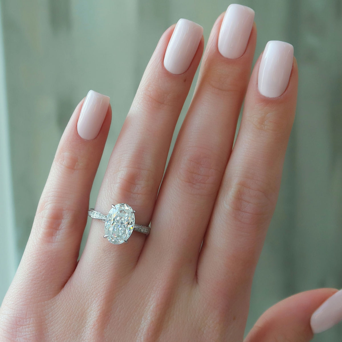 The Ring Shown in the Picture Holds a Beautiful Oval Cut Lab Grown Diamond.