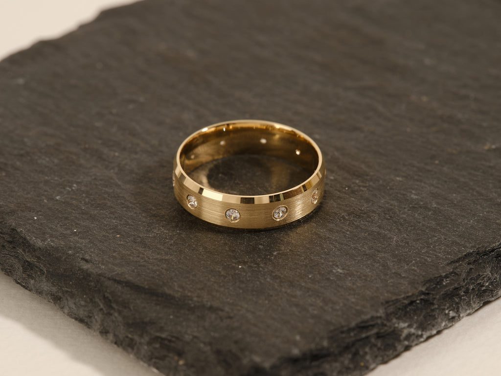 0.30CT Round Cut Ten-Stone Lab Grown Diamond Matte Brushed Men's Wedding Band