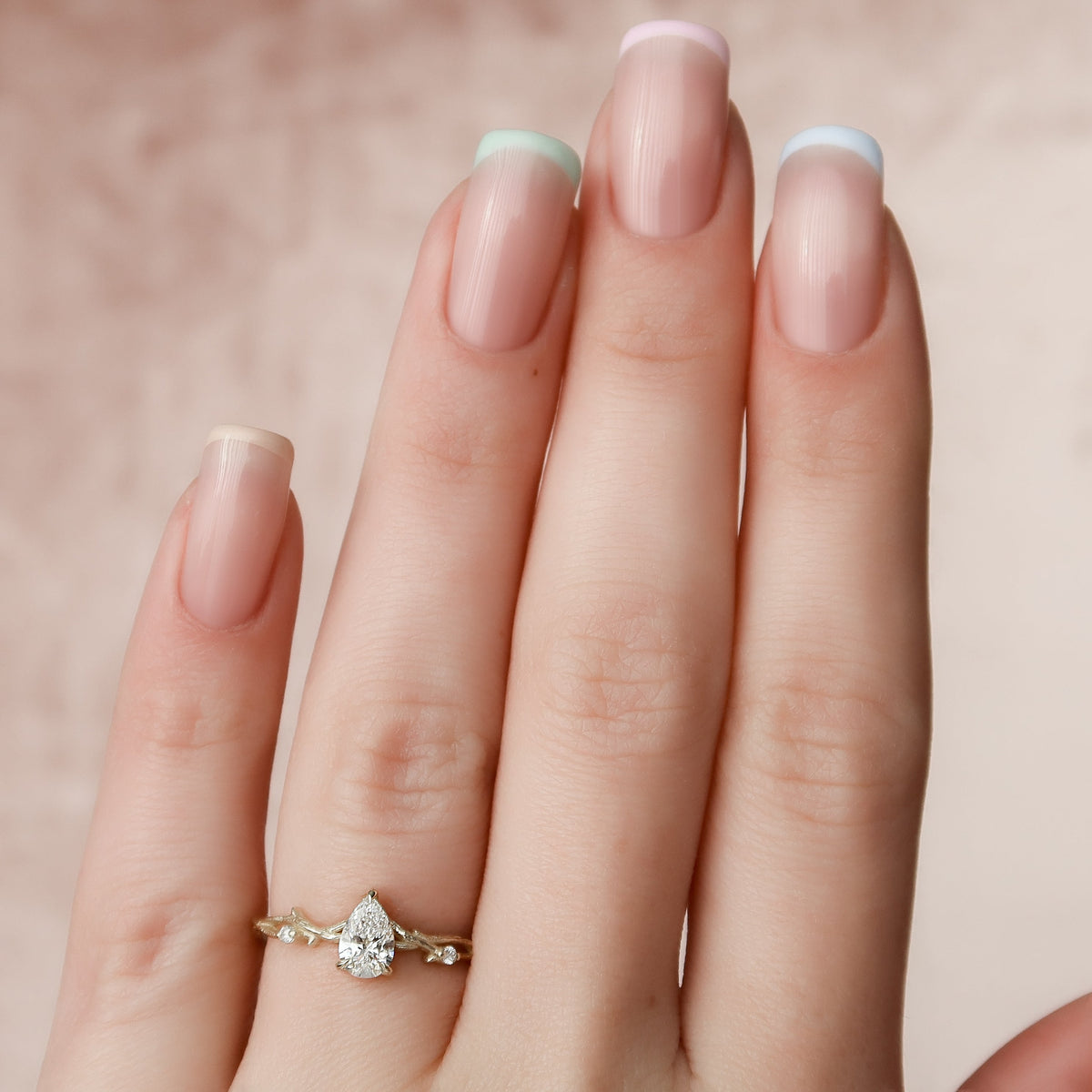 The Ring Shown in the Picture Holds a Beautiful Pear Cut Lab Grown Diamond.