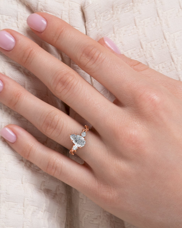 1.0 - 3.0 CT Pear Cut CVD Diamond Three Stone & Twig Setting Engagement Ring