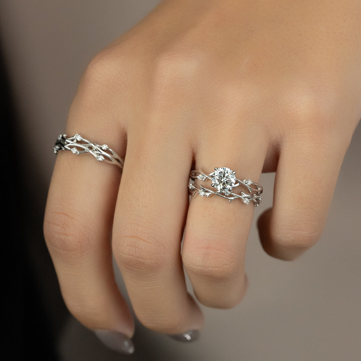 1.0 - 3.0 CT Round Cut CVD Diamond Twig Setting Engagement Ring