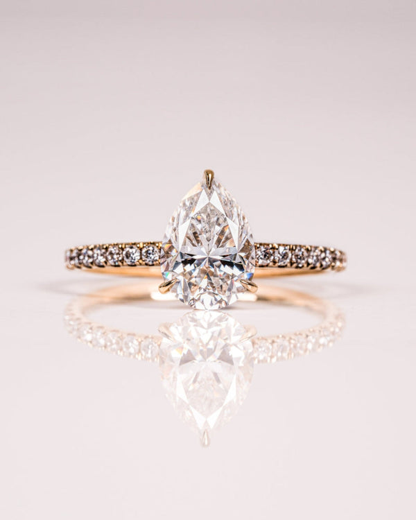 1.0 - 2.50 CT Pear CVD Diamond Hidden Halo Pave Setting Engagement Ring