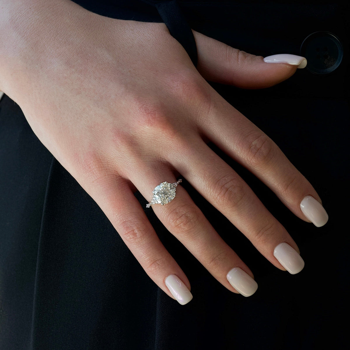 ✦ The Ring Shown in the Picture Holds a Beautiful Cushion Cut Lab Grown Diamond.