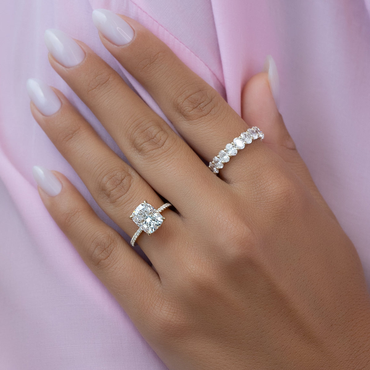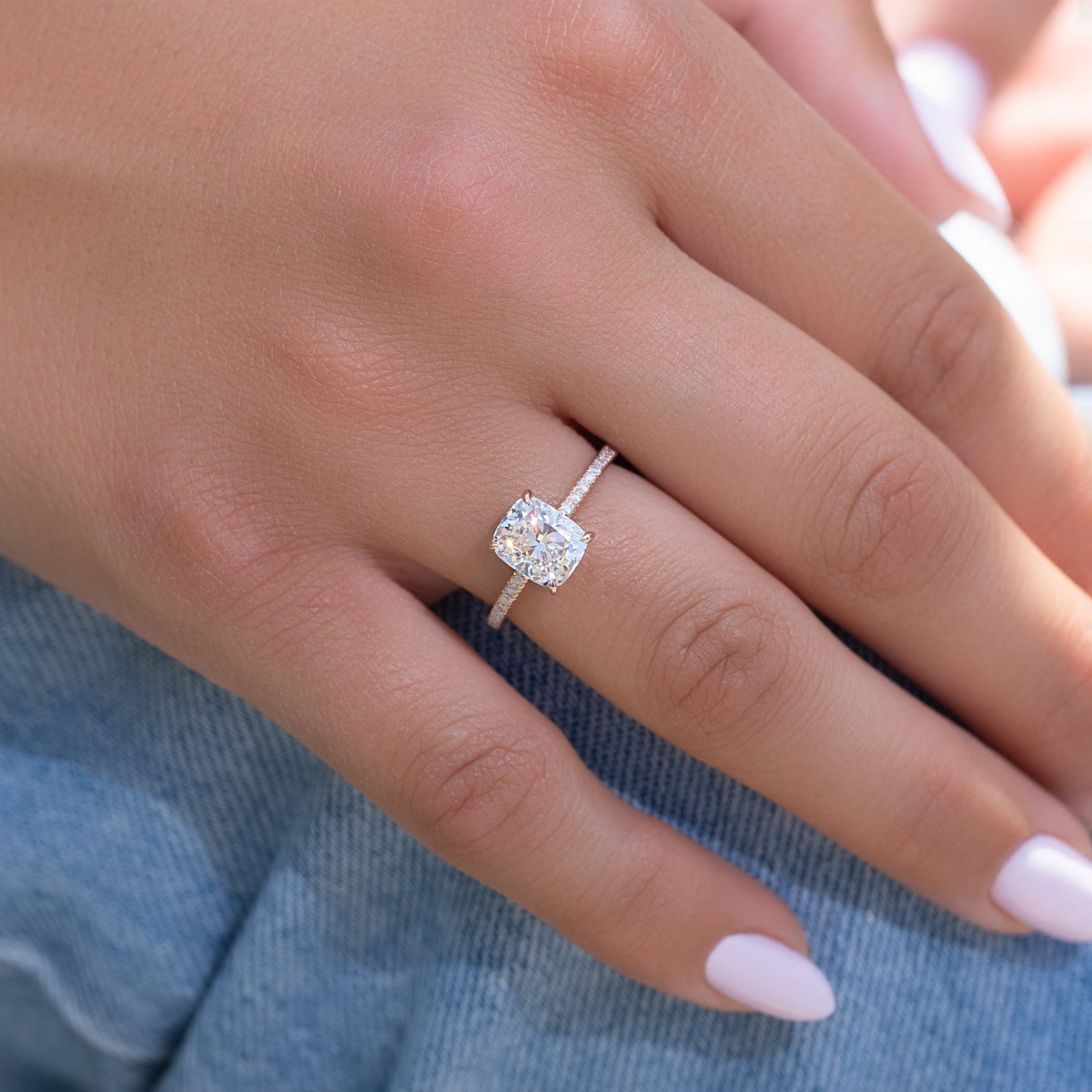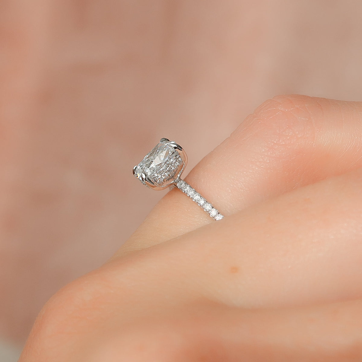 2.0 - 4.0 CT Elongated Cushion Cut CVD Diamond Hidden Halo & Pave Style Engagement Ring