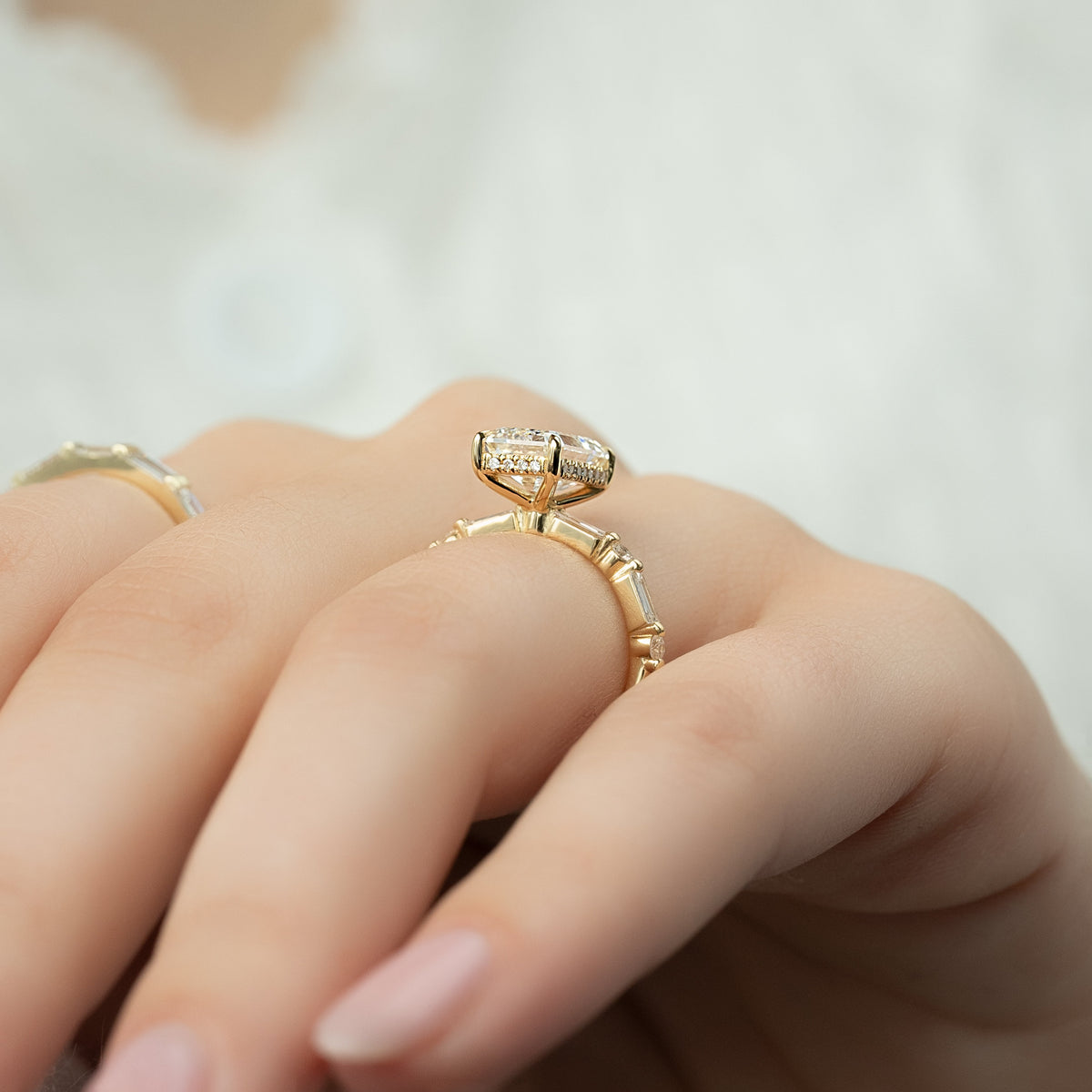 2.0 -4.0 CT Emerald Cut Hidden Halo Pave Engagement Ring