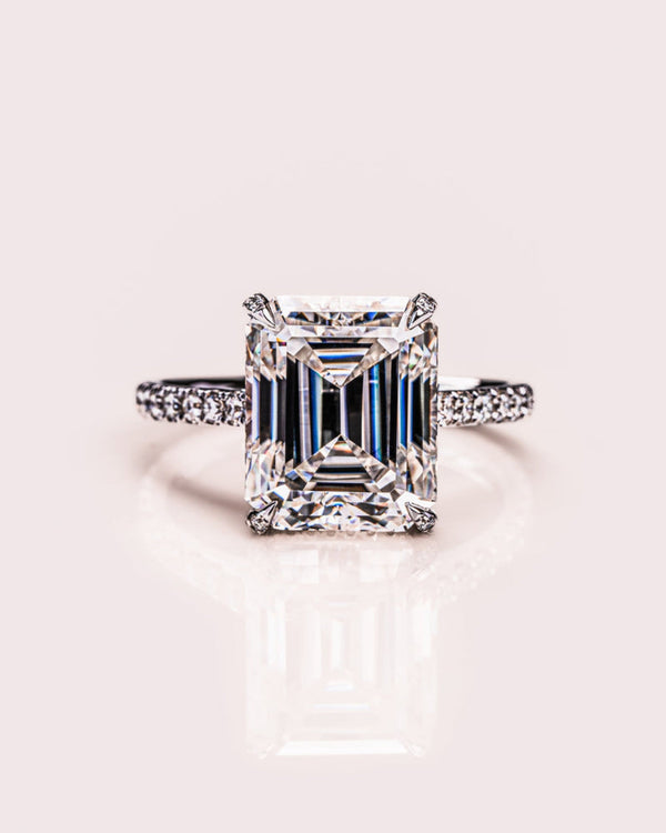 2.0 - 4.50 CT Emerald CVD Diamond Pave Setting Engagement Ring