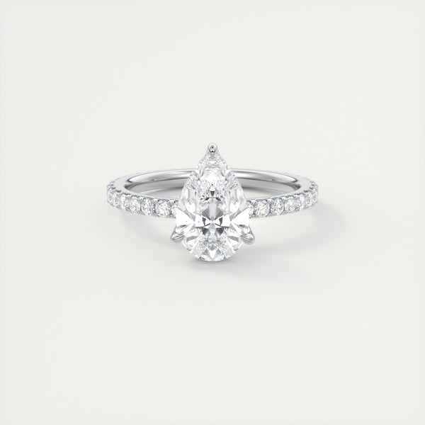 2CT Pear Cut Moissanite Solitaire Pave Setting Engagement Ring