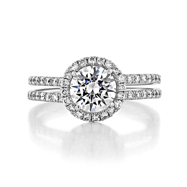 1.0ct Round Cut Halo Double Shank Moissanite Engagement Ring