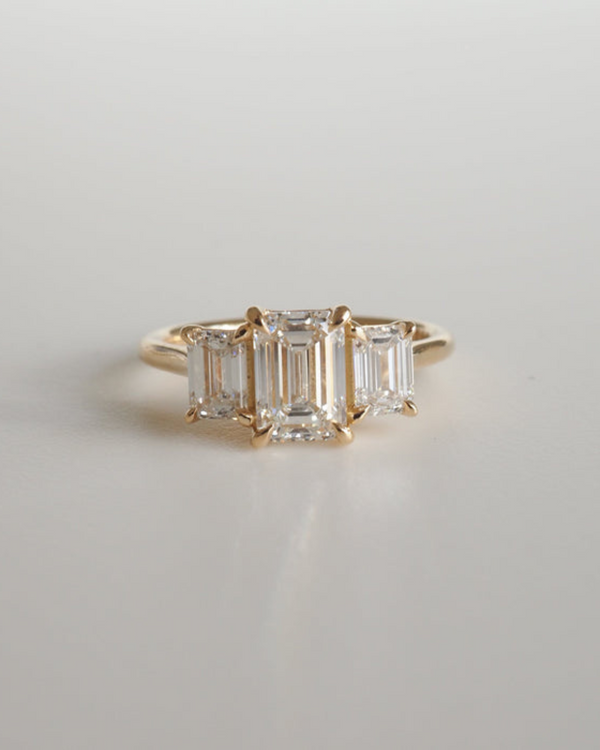 2.05 Carats Emerald Shaped CVD Diamond Three Stone Style Engagement Ring