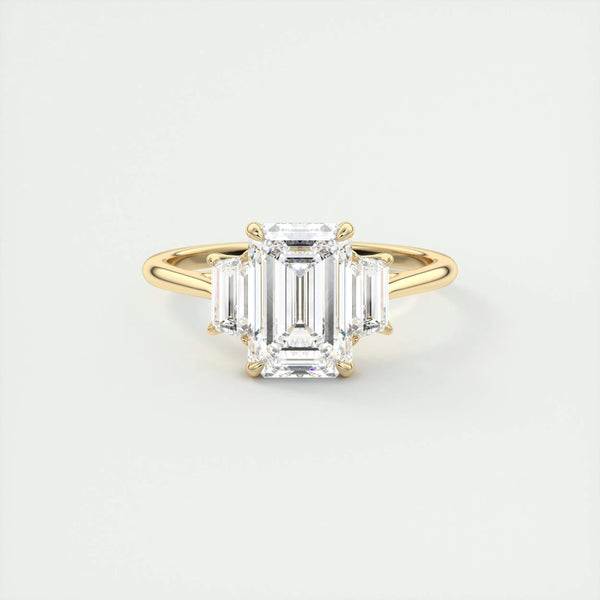 2.0 Ct Emerald Three Stone Moissanite Diamond Engagement Ring