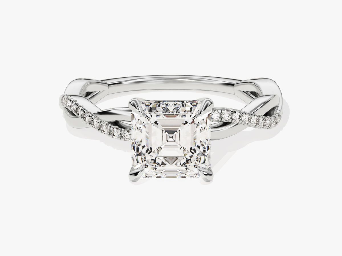 Asscher Twisted Moissanite Engagement Ring with Pave Set Side Stones (1.50 CT)