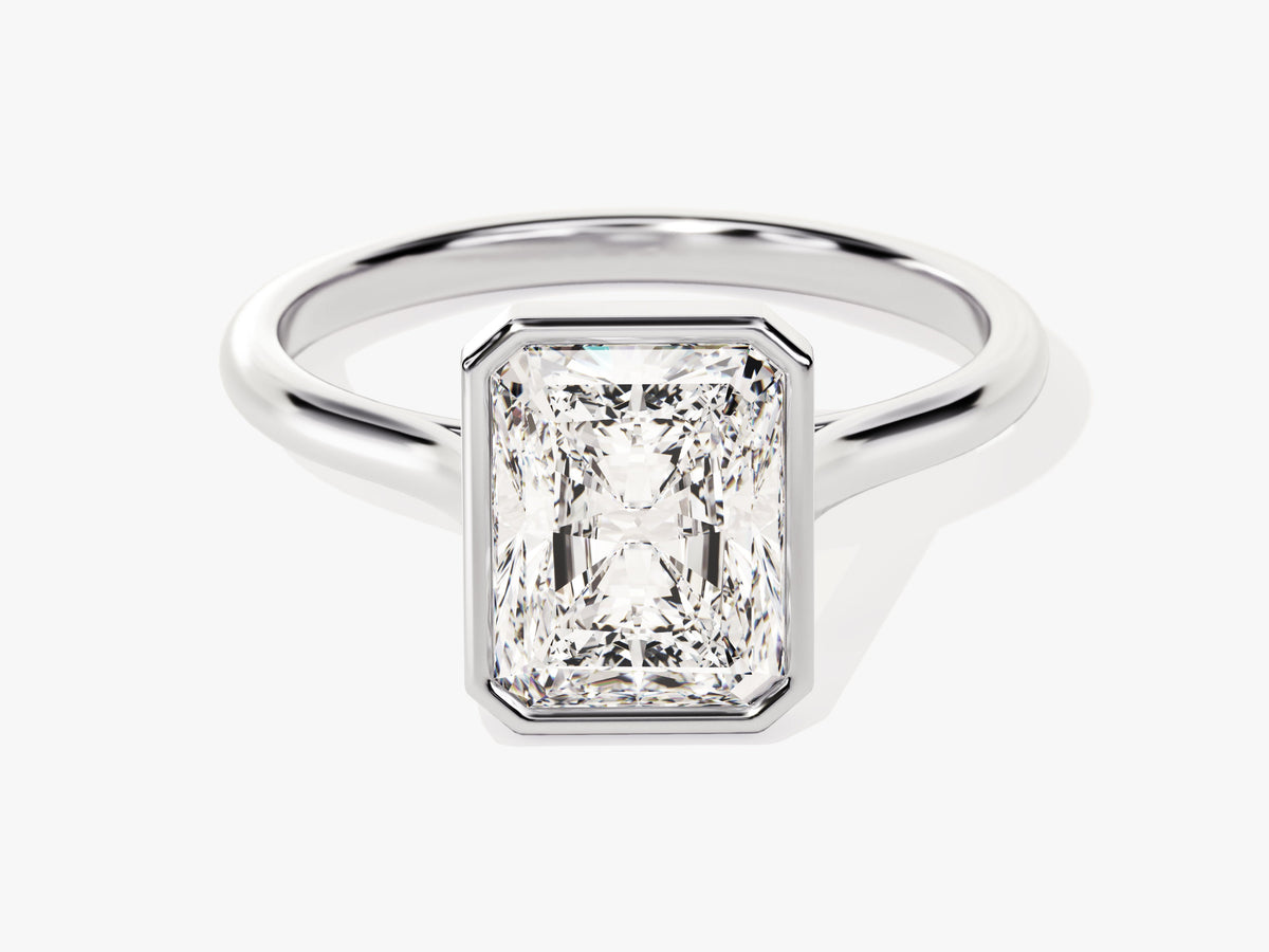 Experience the perfect fusion of tradition and modernity with our Bezel Radiant Moissanite Engagement Ring. This exquisite ring is designed to capture hearts and make memories that last a lifetime. At its core lies a radiant-cut moissanite gem, celebrated for its stunning brilliance, nestled within a sleek bezel setting. Crafted with utmost care, this ring radiates timeless charm and sophistication.