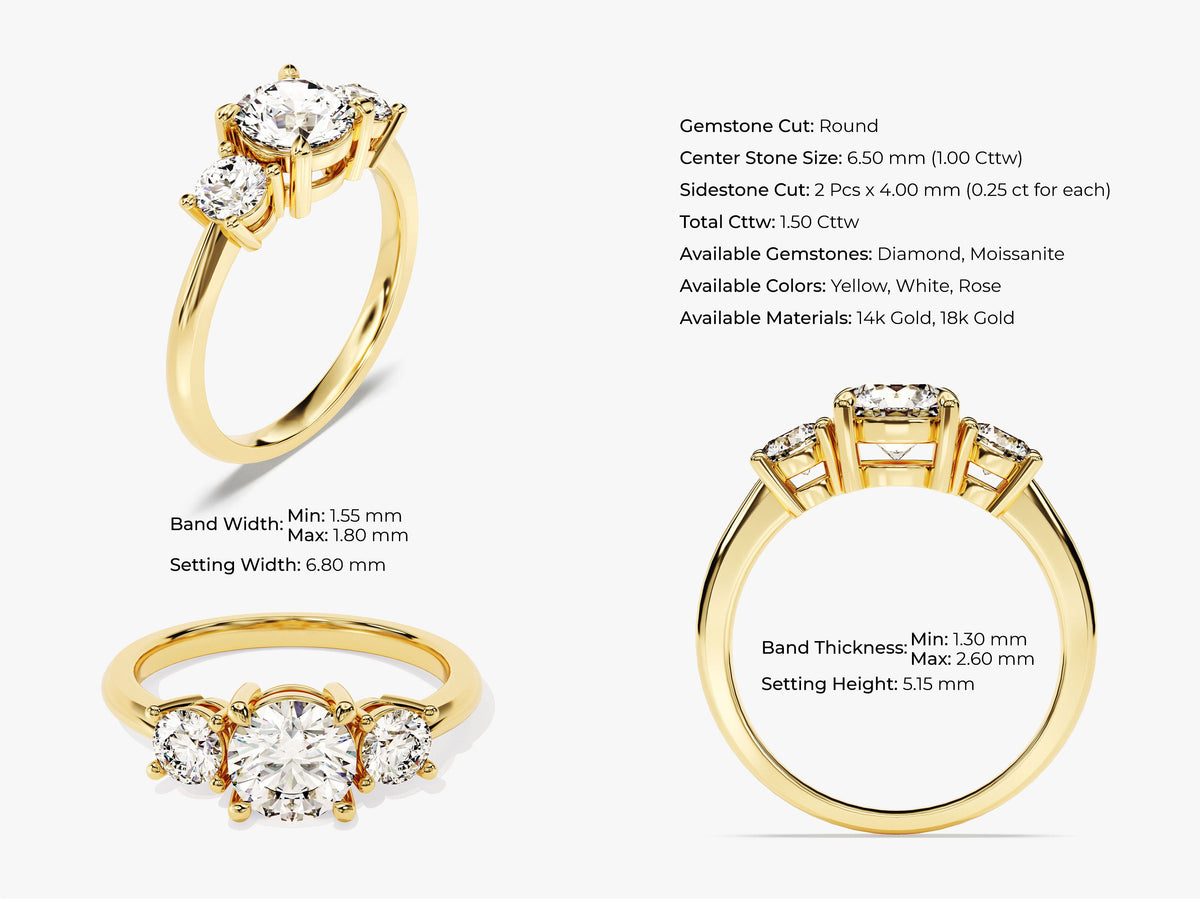 Classic Basket Set Three Stone Round Moissanite Engagement Ring (1.50 CT TW)